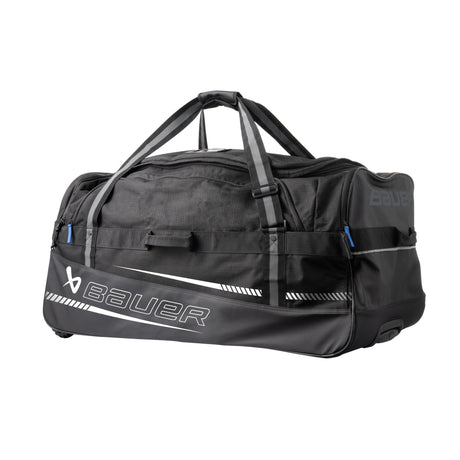 Upgrade your hockey travel gear with the Bauer Elite Senior Hockey Wheeled Bag, equipped with a spacious D-shaped zipper main compartment, Skate Pocket Divider, and Organizer Panel for efficient equipment storage. Enjoy optimal ventilation through Premium Dual Sided Ventilation Panels and a Top Ventilation Panel, and experience enhanced durability and mobility with the reinforced base, adjustable shoulder straps, and an extension pull handle with oversized wheels.