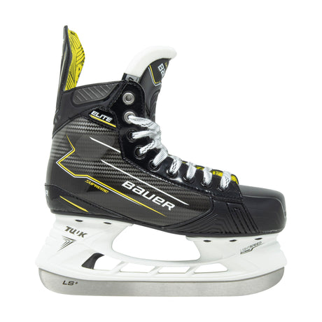 The 2024 Bauer Supreme Elite Intermediate Hockey Skates are constructed with a 1-Piece Sublimated Microfiber lining and 40 OZ Pro Stock tongue, prodiving unparalleled comfort and protection, while the TUUK Lightspeed Edge blade holder and LS+ Steel runner deliver optimal control and acceleration during gameplay.