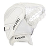 Experience next-level goaltending with the CCM Axis XF Senior Goalie Catcher, featuring a Double Straight Tee Pocket for optimal puck absorption and tracking. The HD FLEXMOTION Backhand Guard provides high-impact protection with easier opening and closing, while the Sure-grip Palm ensures a comfortable fit, exceptional feel, and added control during crucial plays.