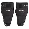 The CCM F5 Senior Goalie Knee Pads provide lightweight protection and flexibility with a slim, contoured design. Multi-layered foams and PE offer impact resistance, while strategic flex points follow your knee’s natural movement. Comfort padding and a soft liner enhance fit, with two adjustment points for a secure feel.
