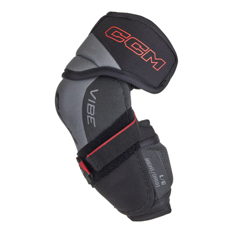 Exclusively at Source for Sports, the CCM JetSpeed Vibe Senior Hockey Elbow Pads offer lightweight, low-profile protection with a comfortable fit. The two-piece design features a compress-molded PE plastic forearm guard and a floating bicep pad for better mobility. A simplified strapping system ensures a secure fit, while the anatomical donut hole design helps keep the pad centered on your elbow. Finished with a red sublimated liner and a fabric-covered elbow cap, these pads deliver style, comfort, and performance every shift.