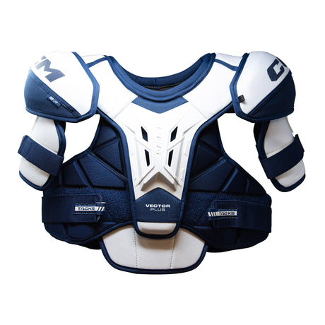 Equip yourself with the best in protection and style with the Source Exclusive CCM Tacks Vector Plus Hockey Shoulder Pads. Boasting a retro reverse Jofa-inspired design, these pads feature JDP injected shoulder caps and a simplified sternum base panel for optimal impact resistance. The reinforced clavicle protection with PE insert and built-in PE foam shoulder blade protection provide additional safety, while the compress-molded front and back panels with extra foam rib guards ensure all-around protection. The height-adjustable foam bicep and compress-molded exposed belly pad offer a perfect fit and added comfort.