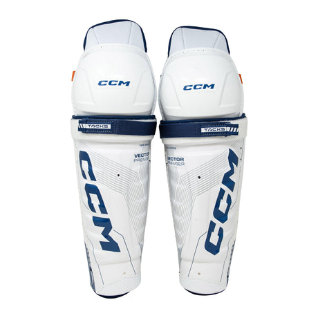 Stay protected on the ice with the Source Exclusive CCM Tacks Vector Premier Hockey Shin Guards. Featuring a retro-inspired look, these shin guards are equipped with a D3O Shotblock Protection calf guard and a JDP Cap for enhanced safety. The mid density foam and PE plastic reinforced side guard deliver robust protection, while the XF padded Hyper X lock strap design ensures a snug fit. Additionally, the removable sublimated liner with comfort donut and nylon reinforcement at the bottom, along with the ADPTFIT length-adjustable calf strap, provide superior comfort and durability.