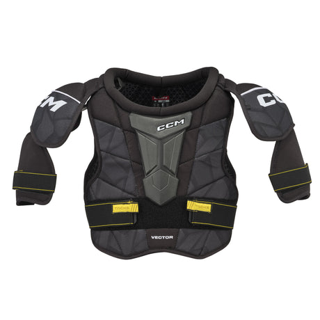 The Source Exclusive 2023 CCM Tacks Vector Hockey Shoulder Pads deliver dependable protection and comfort for developing players. Built with a single-layer PE foam base, these pads offer a lightweight feel without sacrificing coverage. JDP-injected shoulder caps, similar to those found on the 9550, help disperse impact, while anatomical PE foam protects the clavicle. The floating, height-adjustable biceps provide a customizable fit, and compression-molded sternum and spine inserts add reinforced protection where it matters most. Finished with a soft comfort liner for all-game wearability—only at Source for Sports.