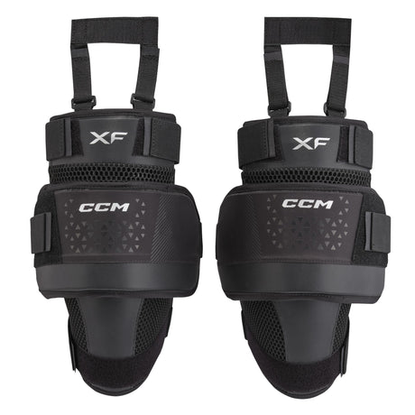 Elevate your goaltending experience with CCM XF Senior Goalie Knee Pads, offering an asymmetrical fit inspired by goalie biomechanics for optimal coverage and mobility. The independent thigh and knee design, along with molded HD foams, provides extended protection, while the anatomical knee cup design ensures optimized movements.
