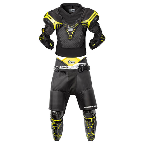 The Sherwood REKKER Elite Youth Kit has been engineered for the young player to go and wheel, snipe, and celly. It's two piece slide on design offers kids the ability to quickly and easily put on the equipment, making it easy for everyone to gear up to play. It includes essential items such as Shoulder and elbow pads integrated into a baselayer shirt, and Pant and shin guards with integrated jock/jill and velcro for hockey socks.